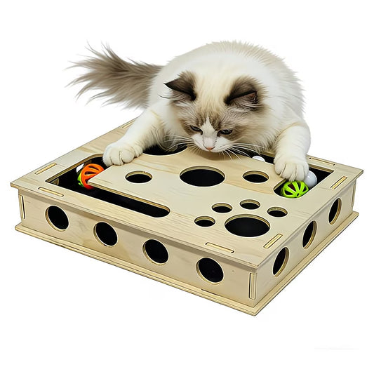 Cat Scratching Post with Nail File - 3-in-1 Interactive Wooden Toy & Treat Box